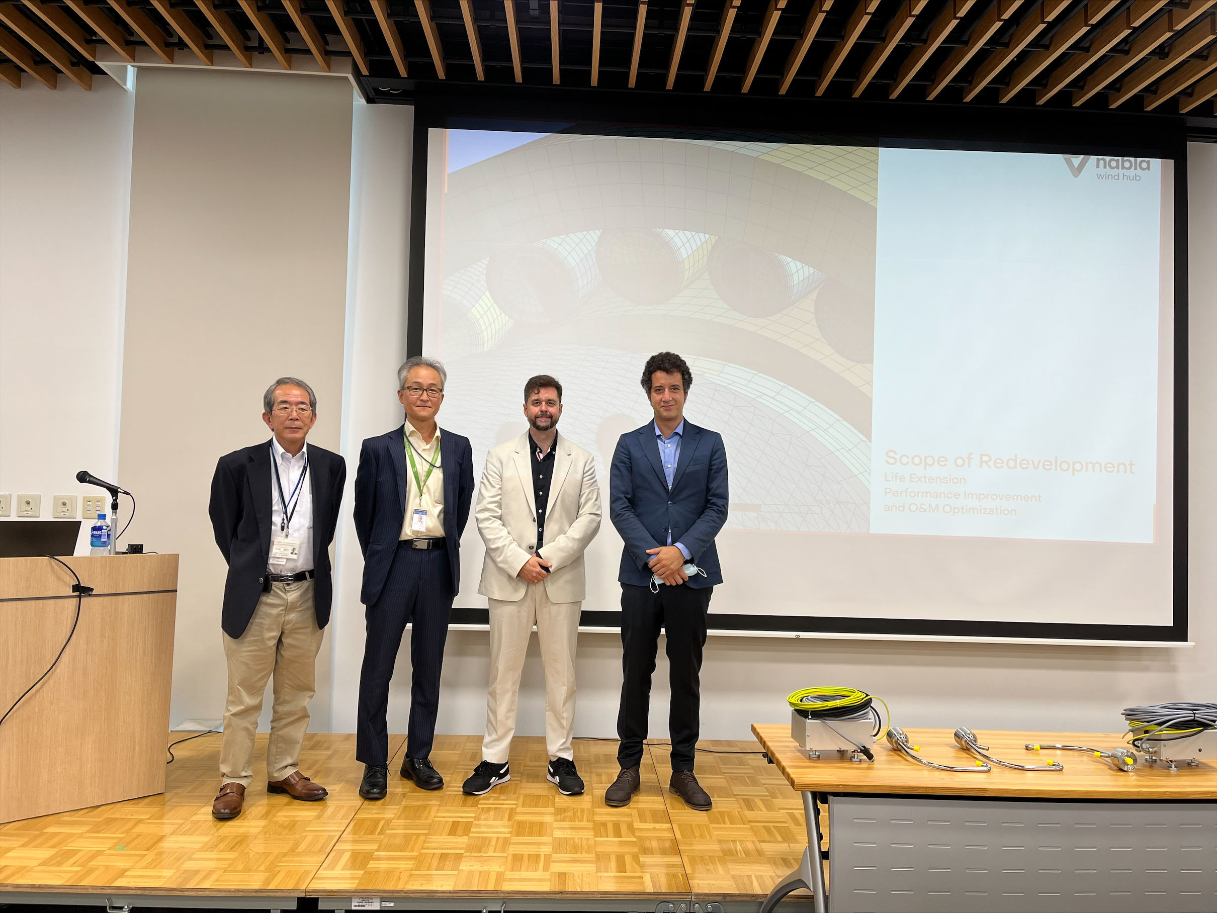 La semana pasada, Rubén Ruiz de Gordejuela, CTO de Nabla Wind Hub, y Ahmed Moussa Caramés, Director de Desarrollo de Negocio de Nabla, volaban a Japón para presentar lo último en tecnología de operación y mantenimiento de parques eólicos.